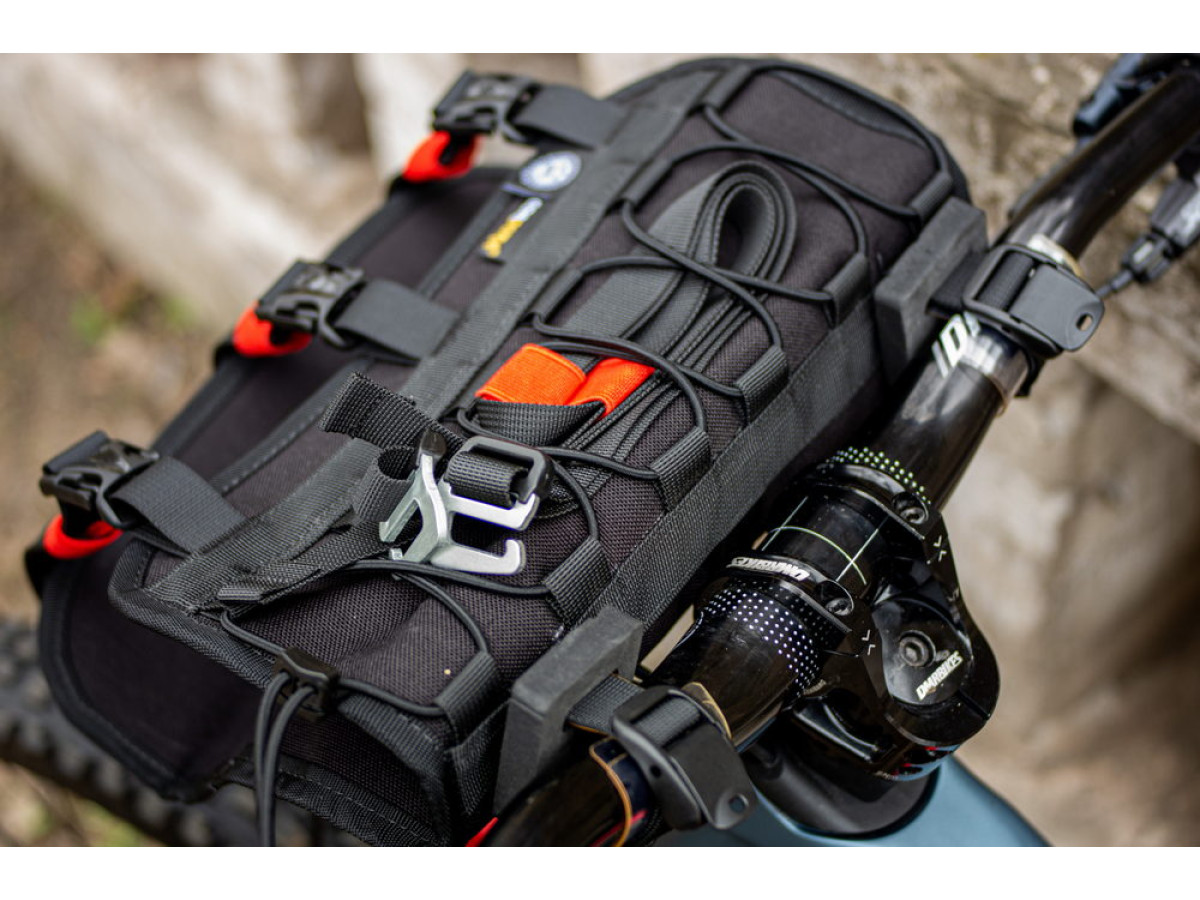 Модульна система від сумки KasyBag Handlebar Roll . Handlebar Harness кріпиться на кермо велосипеда. Фіксується у трьох точках. Дві точки кріплення на кермі, біля виносу, а третя точка за раму. У комплекті є багатофункціональна стропа з гачками для додаткової фіксації за винос. Кріплення є універсальним і підходить на більшість типів кермів гірських або дорожніх велосипедів.