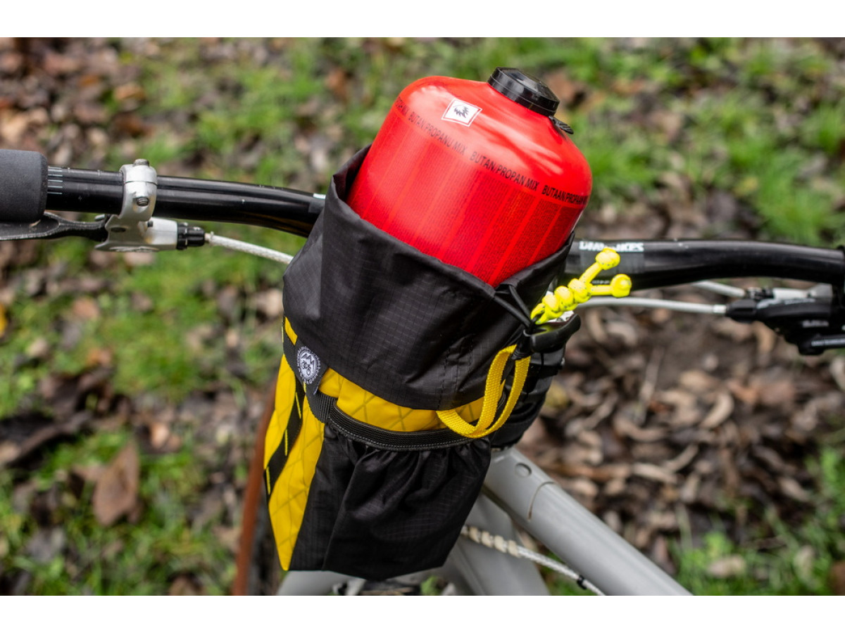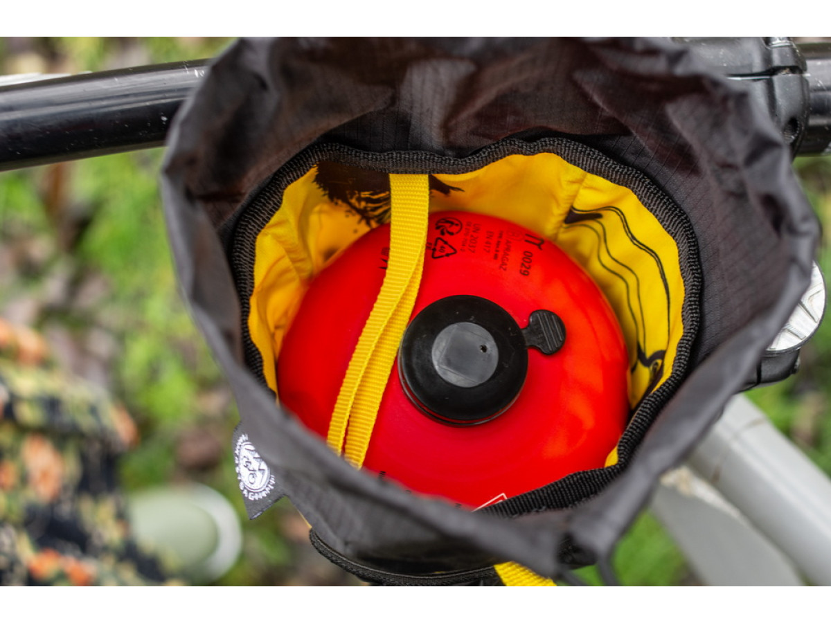 Due to its volume (Standard size), it can accommodate a 450 gram gas cylinder or a liter Nalgene flask. Even a 700 ml pot and even an integrated Jetboil system can fit here.