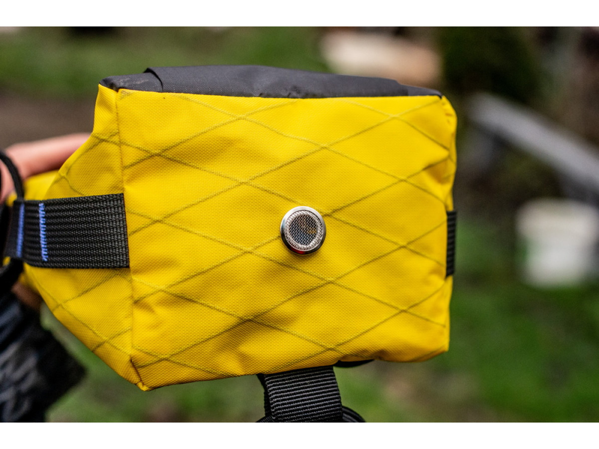 Handlebar bag KasyBag X-Pocket Pack One hand (feeder). Thanks to special fittings, the bag can be opened and closed with one hand. Lightweight bag series using X-Pac material. It retains the robustness of a standard Cordura 1000D feeder, but is 15% lighter!